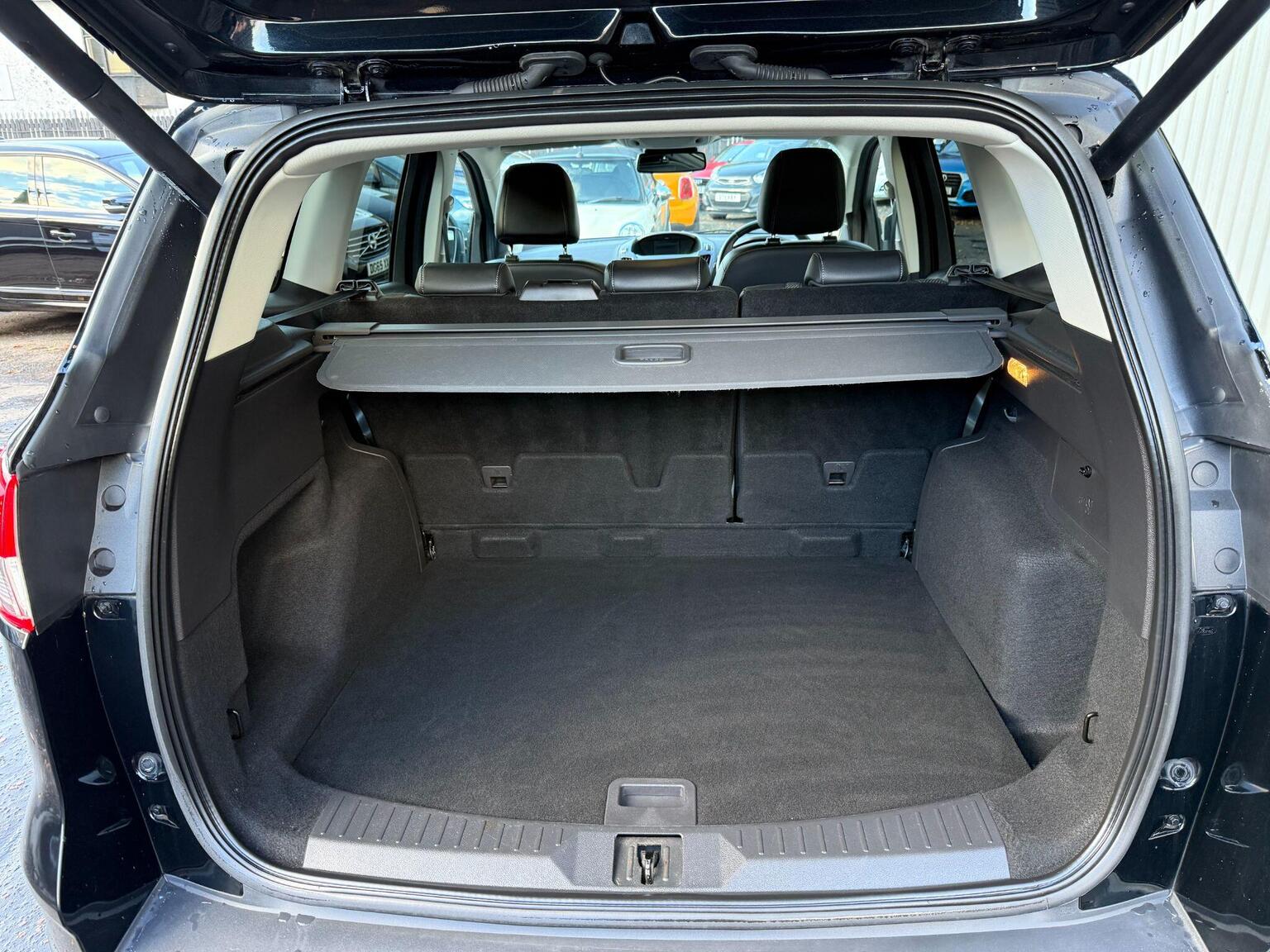 WE ARE DELIGHTED TO OFFER THIS FORD KUGA 2.0 TDCi TITANIUM AWD, PRESENTED IN BLACK WITH CONTRASTING FULL BLACK PART TORINO LEATHER-FULLVECTOR CLOTH INTERIOR, FULL DOCUMENTED SERVICE HISTORY, 2 OWNERS, SATELLITE NAVIGATION, FRONT AND REAR PARK ASSIST WITH REVERSE CAMERA, LANE KEEP ASSIST, BLUETOOTH, CRUISE CONTROL, DAB RADIO, POWER FOLD MIRRORS, POWER OPEN/CLOSE TAILGATE, MULTI-FUNCTION STEERING WHEEL, ROOF RAILS, AUTO LIGHTS, DAYTIME RUNNING LIGHTS, QUICK CLEAR WINDSCREEN, REAR PRIVACY GLASS, USB AUX-IN, 19 INCH ALLOYS, MULTI-FUNCTION STEERING WHEEL, 2 FACTORY KEYS, THIS CAR WILL COME WITH A FULL 12 MONTH MOT.