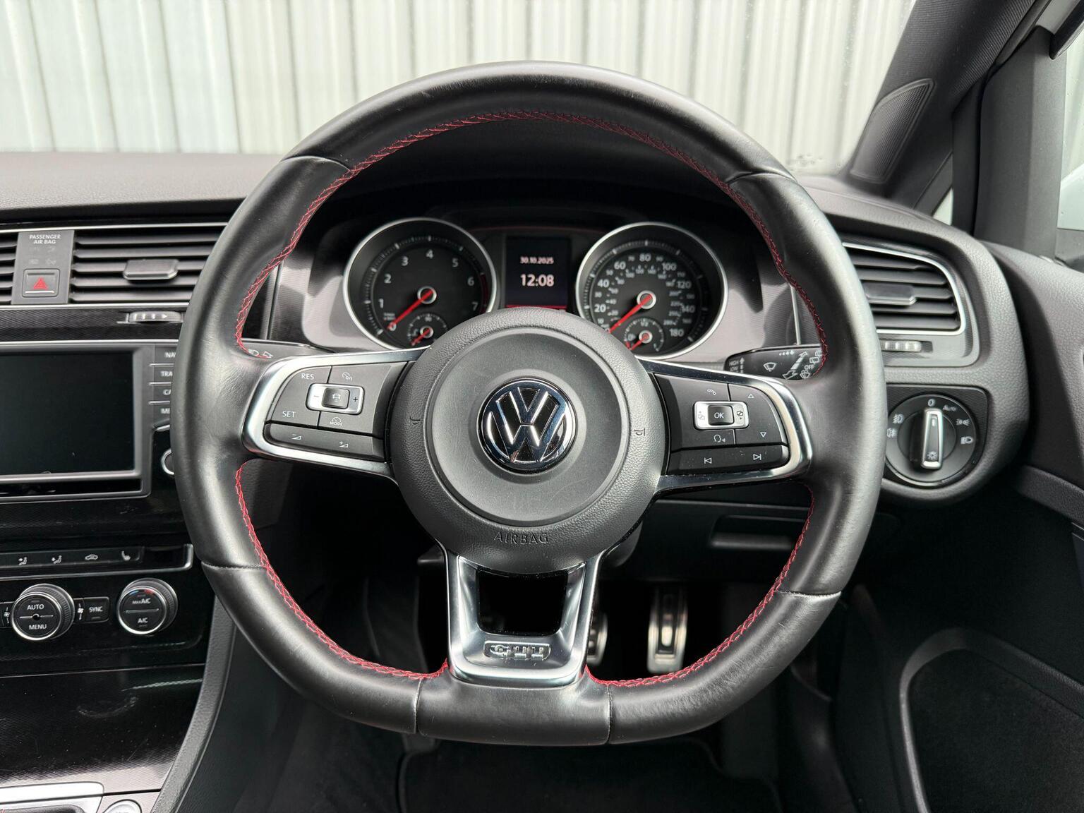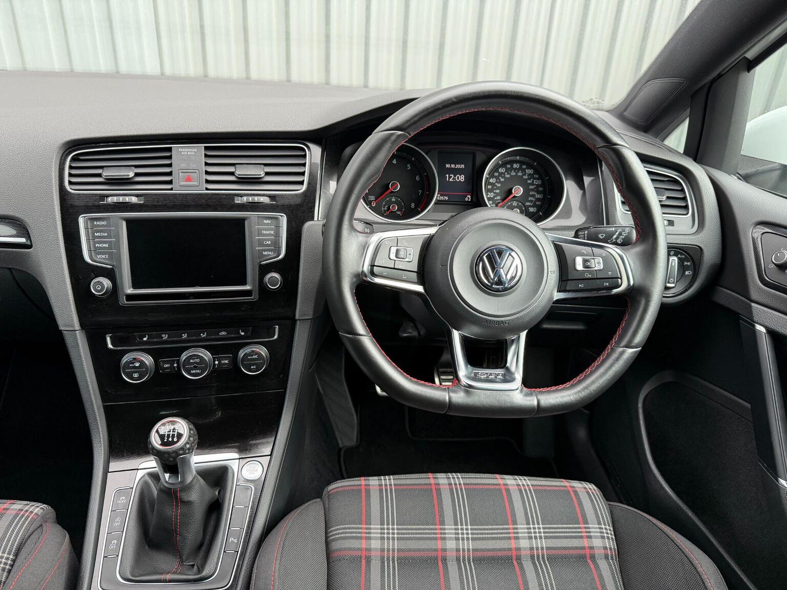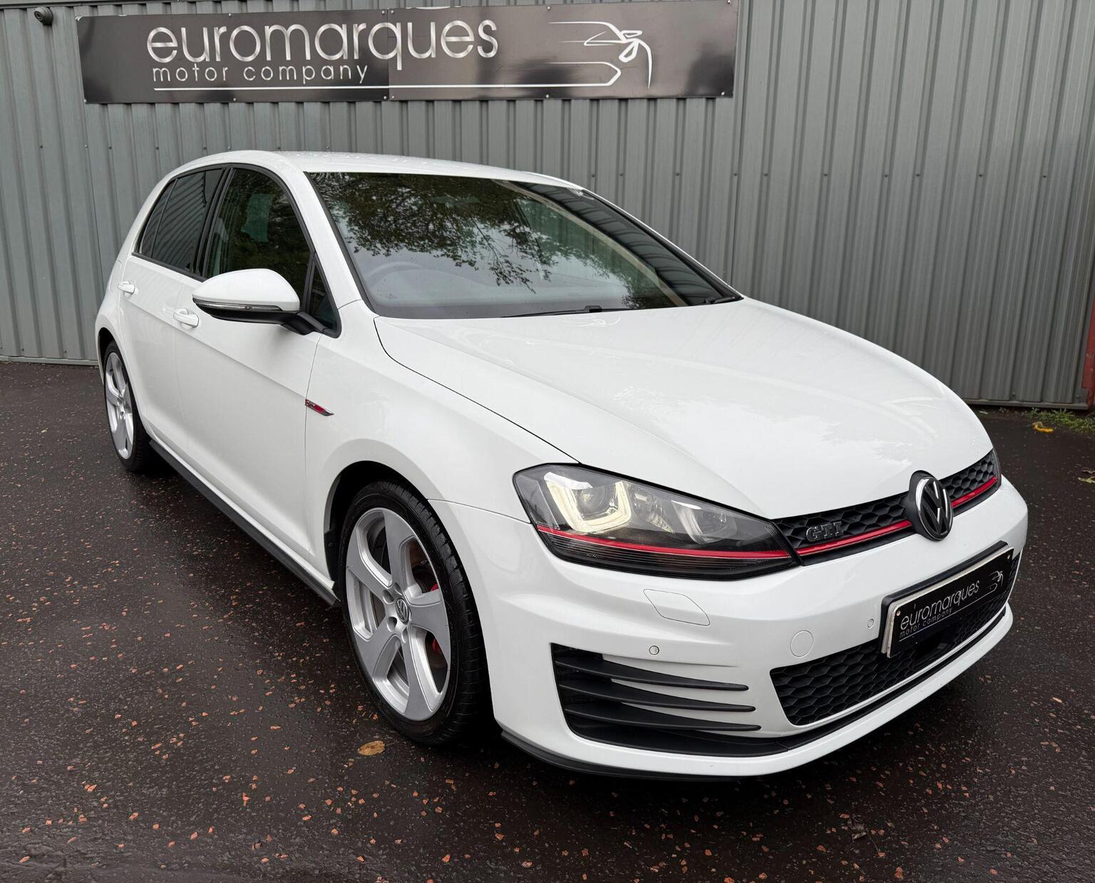 WE ARE DELIGHTED TO OFFER THIS VOLKSWAGEN GOLF 2.0 TSi BlueMotion TECH GTi, PRESENTED IN PURE WHITE WITH CONTRASTING FULL 2 TONE BLACK/RED JACARA CLOTH INTERIOR, HEATED FRONT SPORTS SEATS, FULL DOCUMENTED SERVICE HISTORY, FRONT AND REAR PARK ASSIST, SATELLITE NAVIGATION, ADAPTIVE CRUISE CONTROL, BLUETOOTH, DAB RADIO, POWER FOLD MIRRORS, AUTO BI-XENON LIGHTS, LED DAYTIME RUNNING LIGHTS, MULTI-FUNCTION FLAT BOTTOM STEERING WHEEL, 18 INCH ALLOYS, KEYLESS START/STOP, USB AUX-IN, 2 FACTORY KEYS, THIS CAR WILL COME WITH A FULL 12 MONTH MOT.